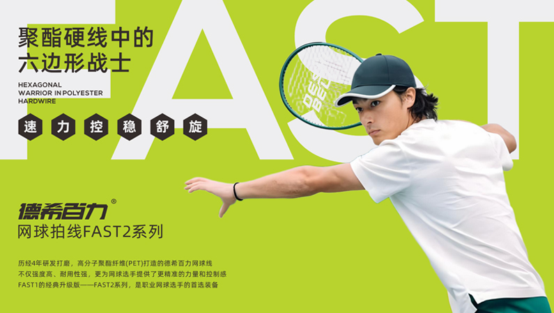 我們依托深厚的行業經驗,成立高分子新材料研究實驗室,自主研發出獨特材質配方與專利高分子聚酯新材料,打造出顛覆性的FAST2系列網球拍線。FAST2系列不僅繼承了硬線的超強的控球精準性、高旋轉性和高耐用性,更巧妙融合了軟線的高彈性、舒適度和力量反饋,成功解決了傳統硬線彈性受限和軟線力量不足的難題,實現了軟硬特性的完美融合。德希百力的網球拍線以其卓越的包裹性和細膩的手感控制,讓球員在每一次揮拍中都能感受到前所未有的精準與速度,讓球員得心應手如周臂使,享受擊球過程的速度與激情。為球員帶來超越期待的擊球體驗,讓每一次揮拍都成為力量、精準與速度的完美融合。選擇德希百力,就是選擇網球技術的突破,選擇與世界頂尖球員并肩前行的力量。